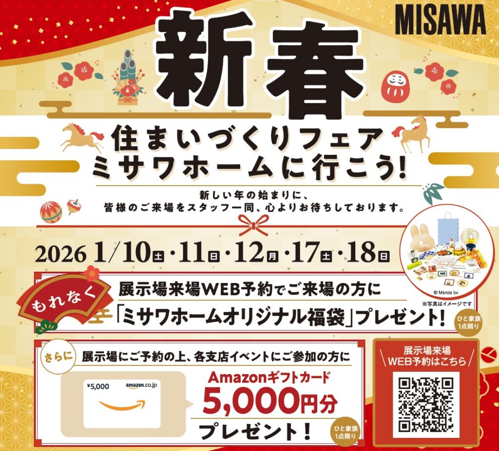 ミサワホーム:Amazonギフトカード5,000円分&福袋プレゼント!新春住まいづくりフェア