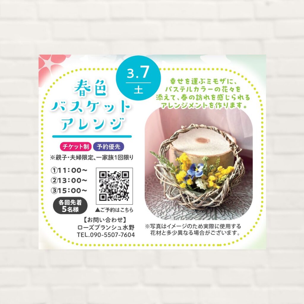 【2026年3月7日(土)】春色バスケットアレンジ